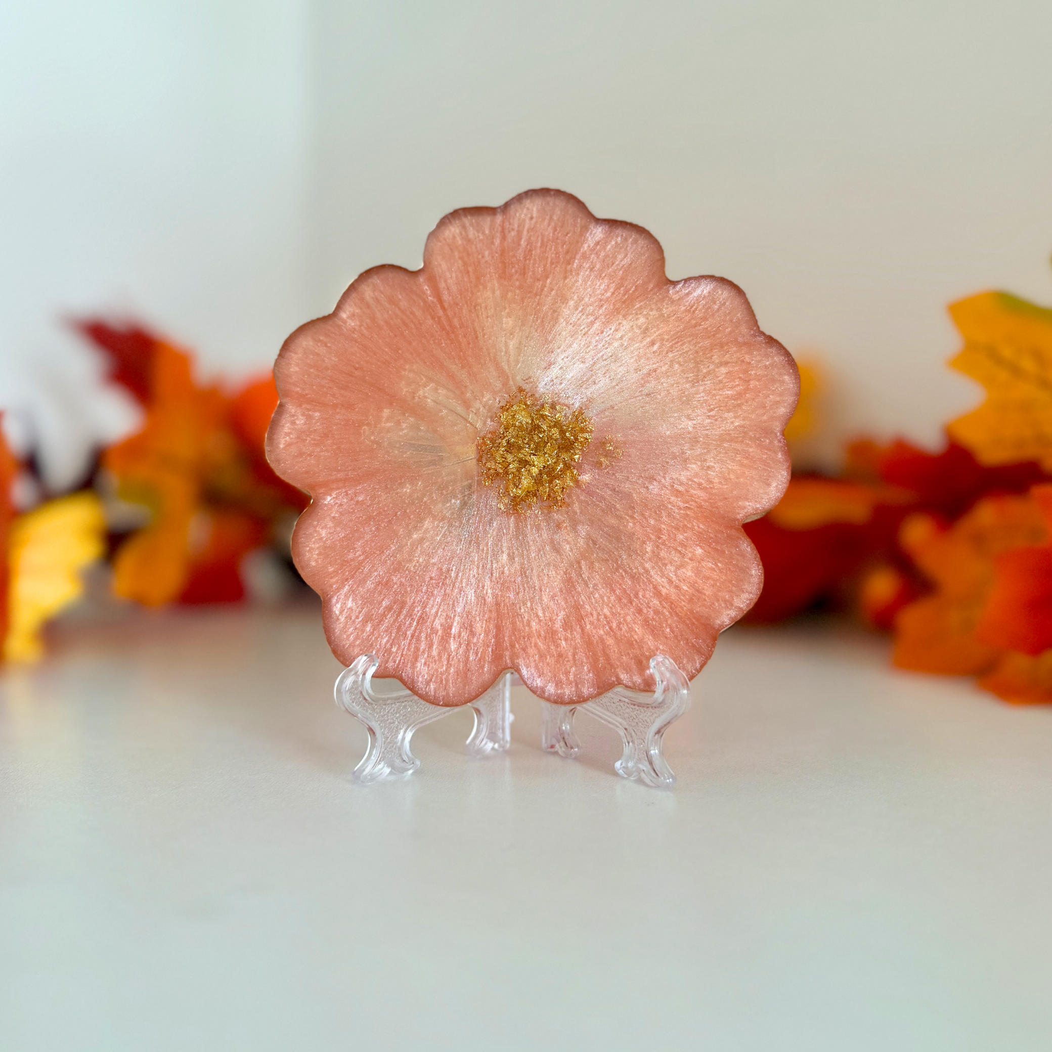 Bring the magic of autumn indoors with our Cosy Autumn Bloom Resin Coasters. Handmade in a delicate flower shape and finished with shimmering gold leaf at the centre and a hand-painted gold edge, these coasters are the perfect mix of cosy and elegant. Whether you’re sipping hot chocolate on a chilly evening or hosting a seasonal gathering, they’ll add a touch of golden autumn charm to your table.