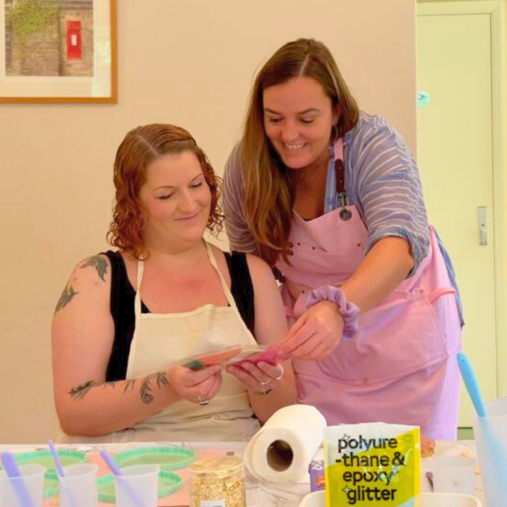 We provide aprons and gloves, but resin can get messy — we recommend wearing old clothes or something you don’t mind getting a splash on.